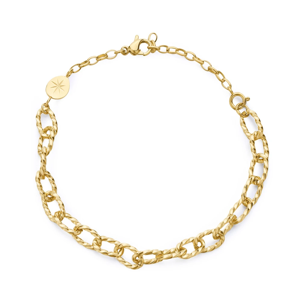 Náramek Brosway z kolekce ESSENTIAL pozlacený technologií PVD je vyrobený z chirurgické oceli. Šperky vyrobené z chirurgické oceli jsou odolné proti poškrábání, nemění barvu, neoxidují, nevyvolávají alergické reakce ani nereagují na pot a prach. Zapínání náramku je na karabinku. Délka náramku je 20 cm.