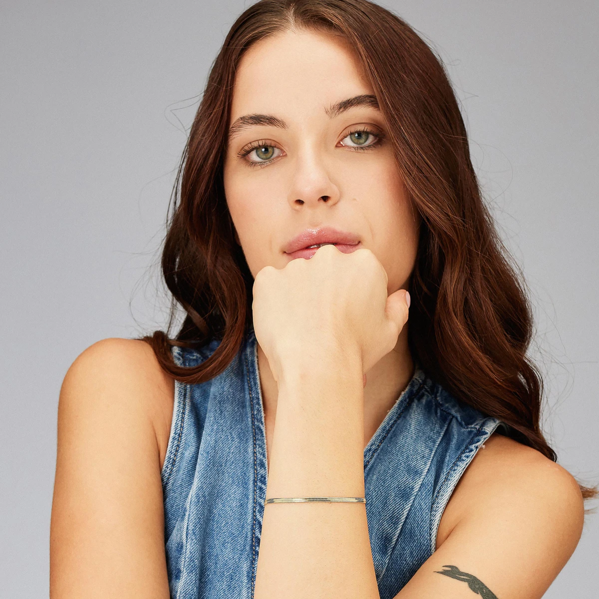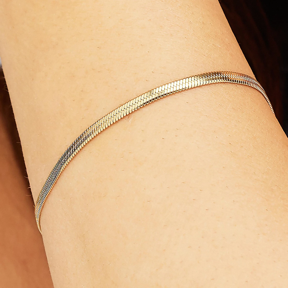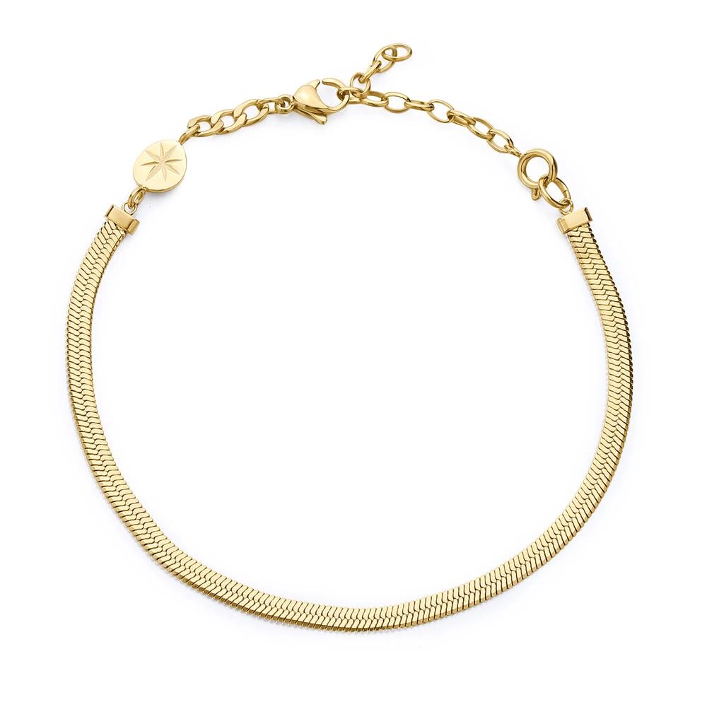 Dámský náramek z chirurgické oceli. Povrch náramku je pozlacený technologií PVD. Zapínání náramku je karabinové, délka náramku 20 cm.