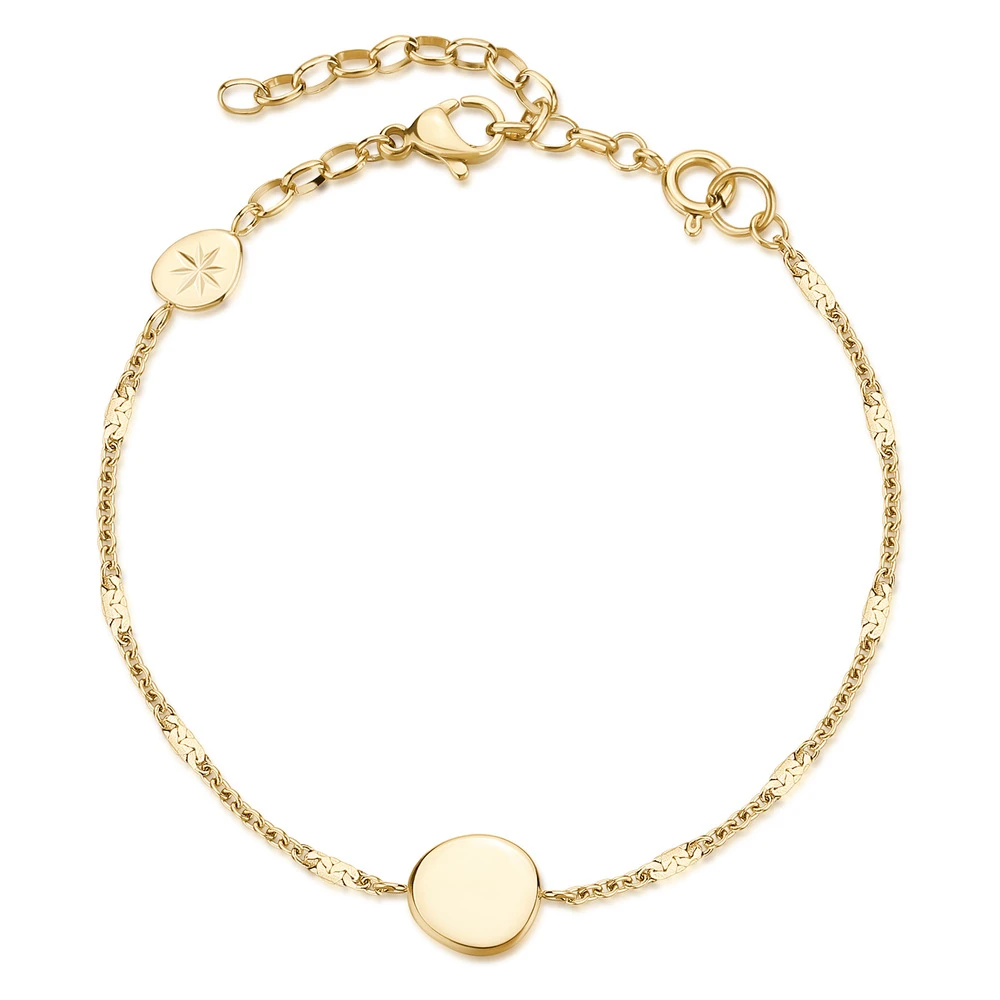 Náramek z chirurgické oceli. Povrch náramku je pozlacený 14K zlatem. Náramek je dlouhý 20cm. Zapínání náramku je karabinové.