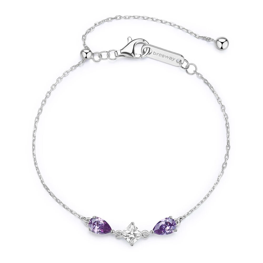 Stříbrný náramek s kamínky. Náramek je vyrobený za stříbra 925/1000 a osazený prvotřídními zirkony. Povrch náramku je porhodiovaný. Nanesené rhodium dodává šperku jasnou baru s leskem, zvyšuje odolnost náramku proti poškrábání a zabezpečuje dlouhodobý bezchybný vzhled šperku. Náramek je dlouhý 18,5 cm, zapínání náramku je karabinové.
