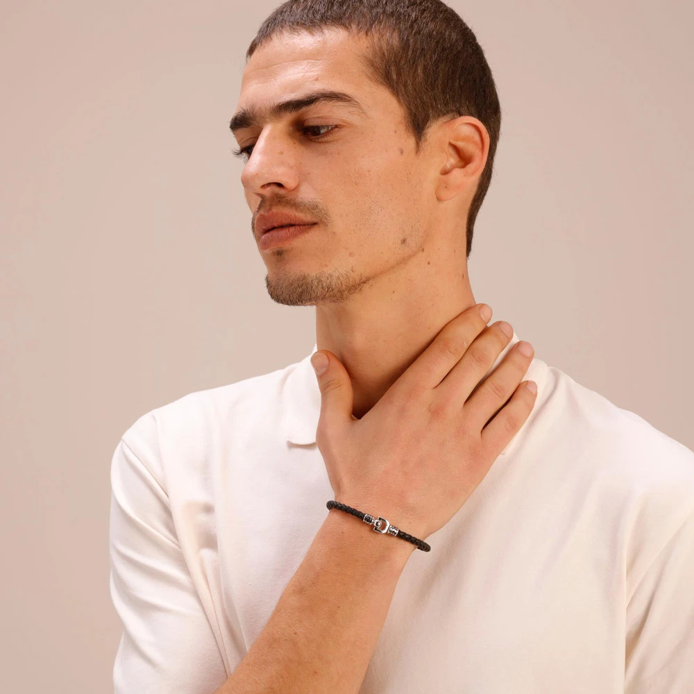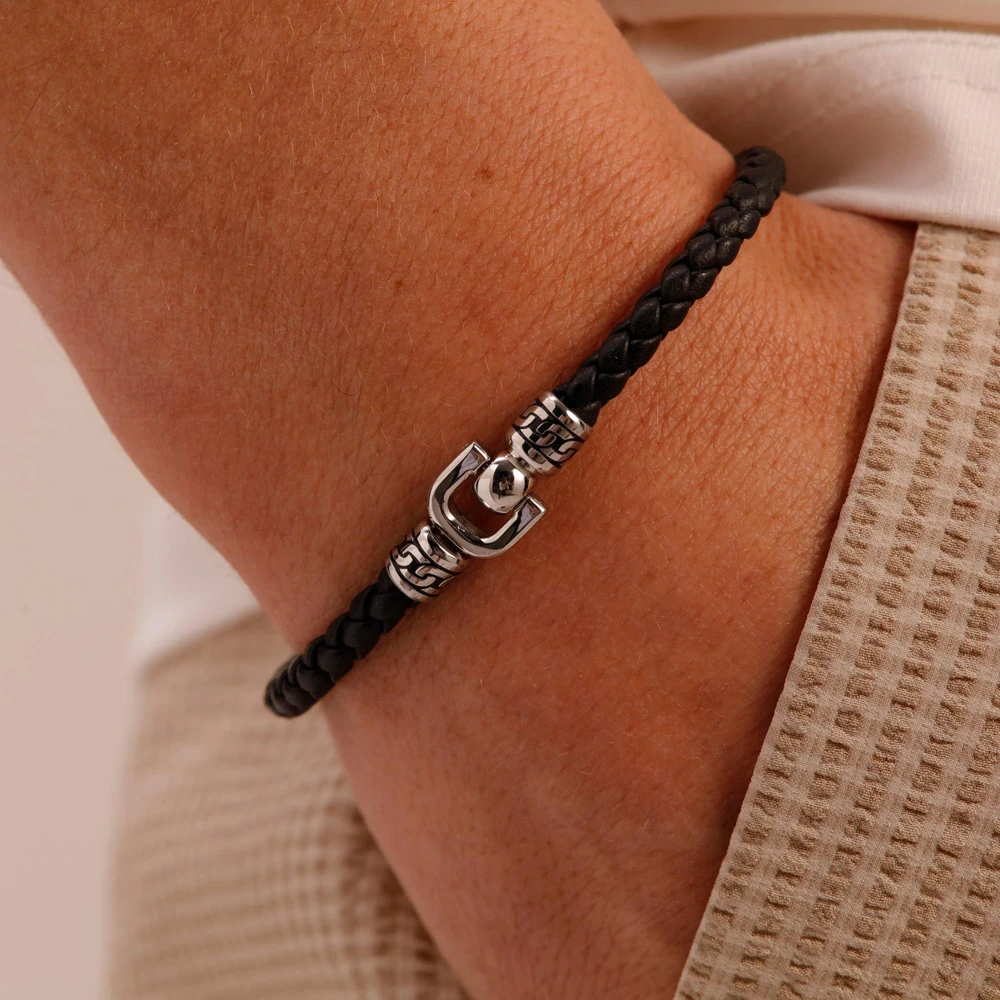 Pánský náramek z chirurgické oceli 316l. Povrch ocelové části náramku je upravený technologií PVD. Průměr náramku 70mm.