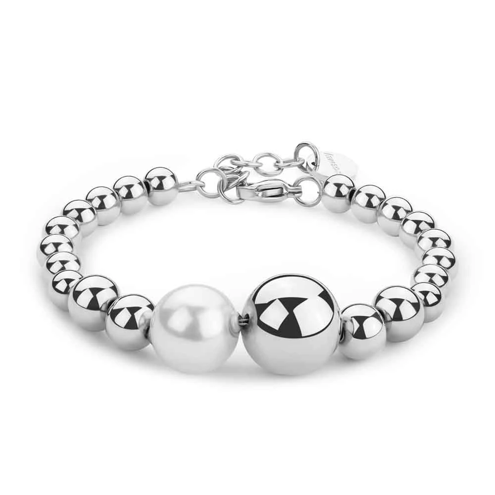 Dámský náramek z chirurgické oceli 316L. Náramek je zdobený přírodní perlou. Povrch náramku je leštěný. Délka náramku 20cm. Zapínání náramku je karabinové.