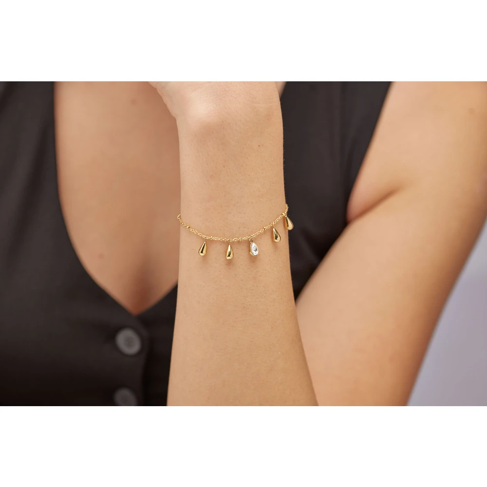 Brosway náramek z kolekce Perfect s přívěsky a krystalem je vyrobený z chirurgické oceli 316L ve zlatém provedení. Šperky vyrobené z chirurgické oceli jsou odolné proti poškrábání, nemění barvu, neoxidují, nevyvolávají alergické reakce ani nereagují na pot a prach. Zapínání náramku je karabinové. Délka náramku je 18 cm.