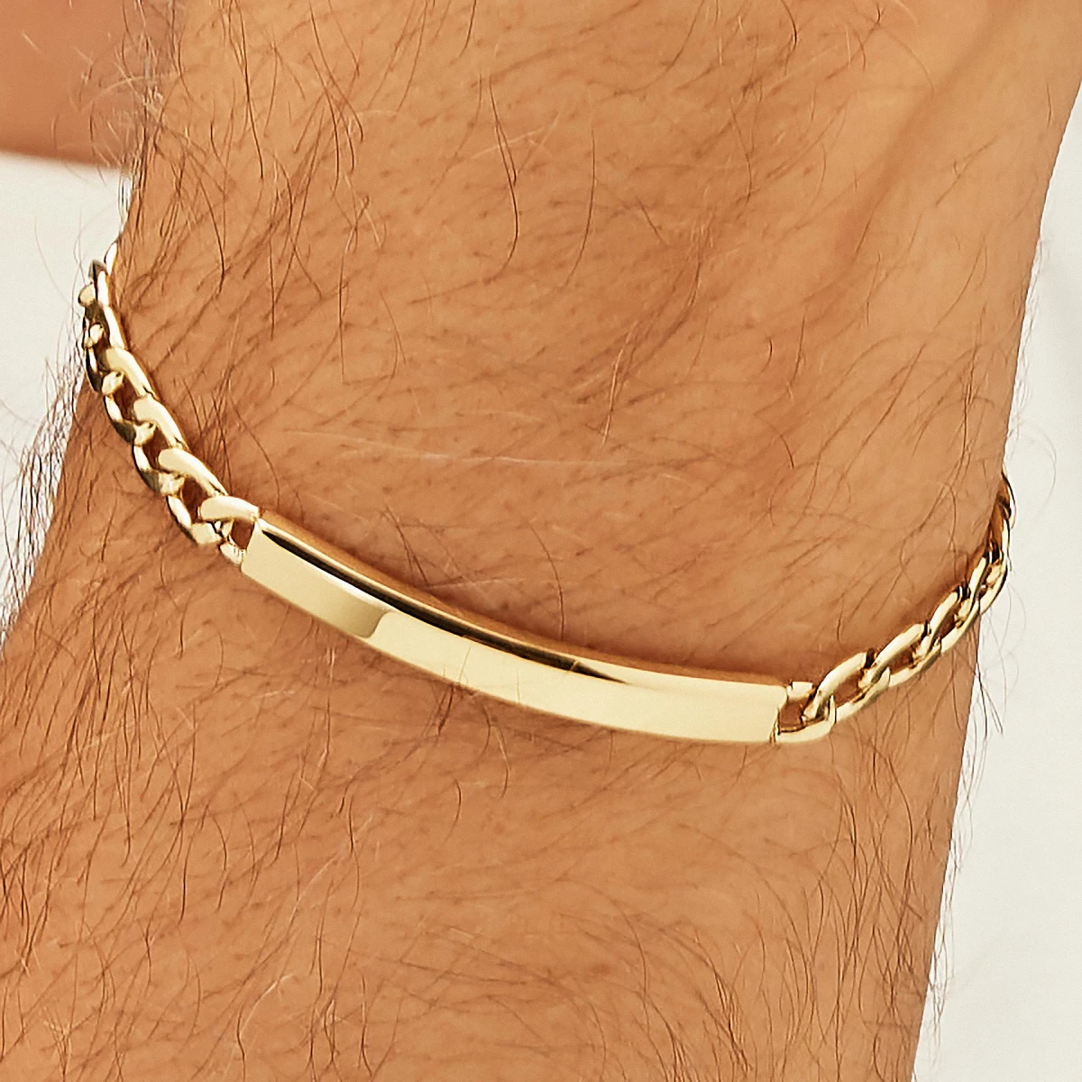Pánský náramek z chirurgické oceli. Povrch náramku je pozlacený 14K zlatem. Náramek vzor pancr s destičkou. Délka náramku 21,8cm.