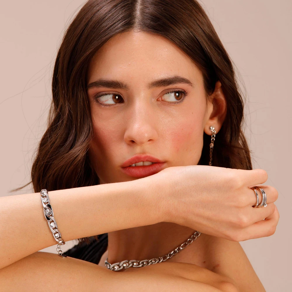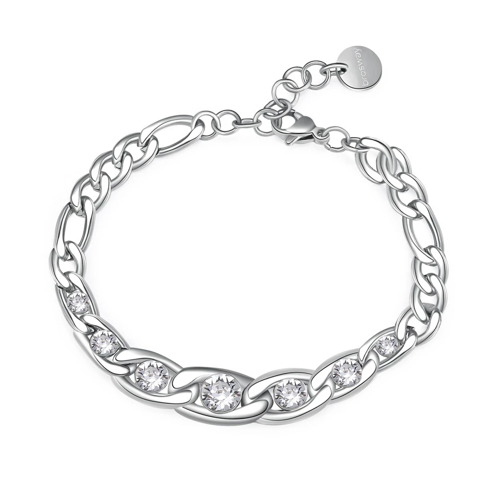 Dámský náramek z chirurgické oceli 316L . Povrch náramku je leštěný. Náramek zdobí zářivé krystaly. Délka náramku 18,5cm