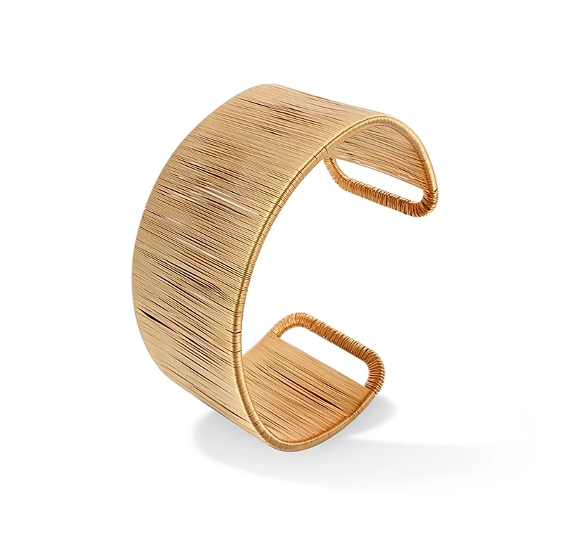 Náramek z chirurgické oceli 316l. Povrch náramku tvoří jemný „drát“ namotaný na kostru, která dává náramku tvar. Šířka 38mm, vnitřní průměr 65mm. V tomto náramku naleznete velmi neobvyklý a neokoukaný šperk.