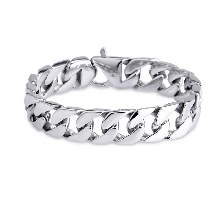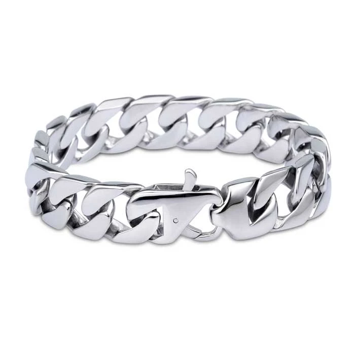 Pánský ocelový náramek na ruku s leštěným povrchem. Náramek se zapíná pomocí masivní karabiny. Šířka náramku 15mm.
