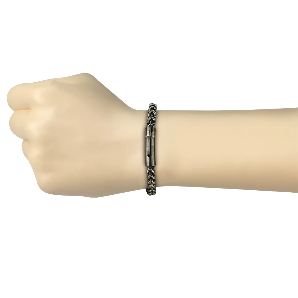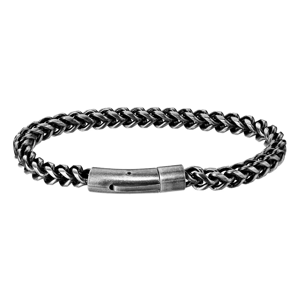 Pánský náramek z chirurgické oceli v barvě pistolové šedi. Povrch náramku je barevně upravený technologií PVD. Náramek je dlouhý 22cm, průměr 6mm. Zapínání náramku je systém bajonet.