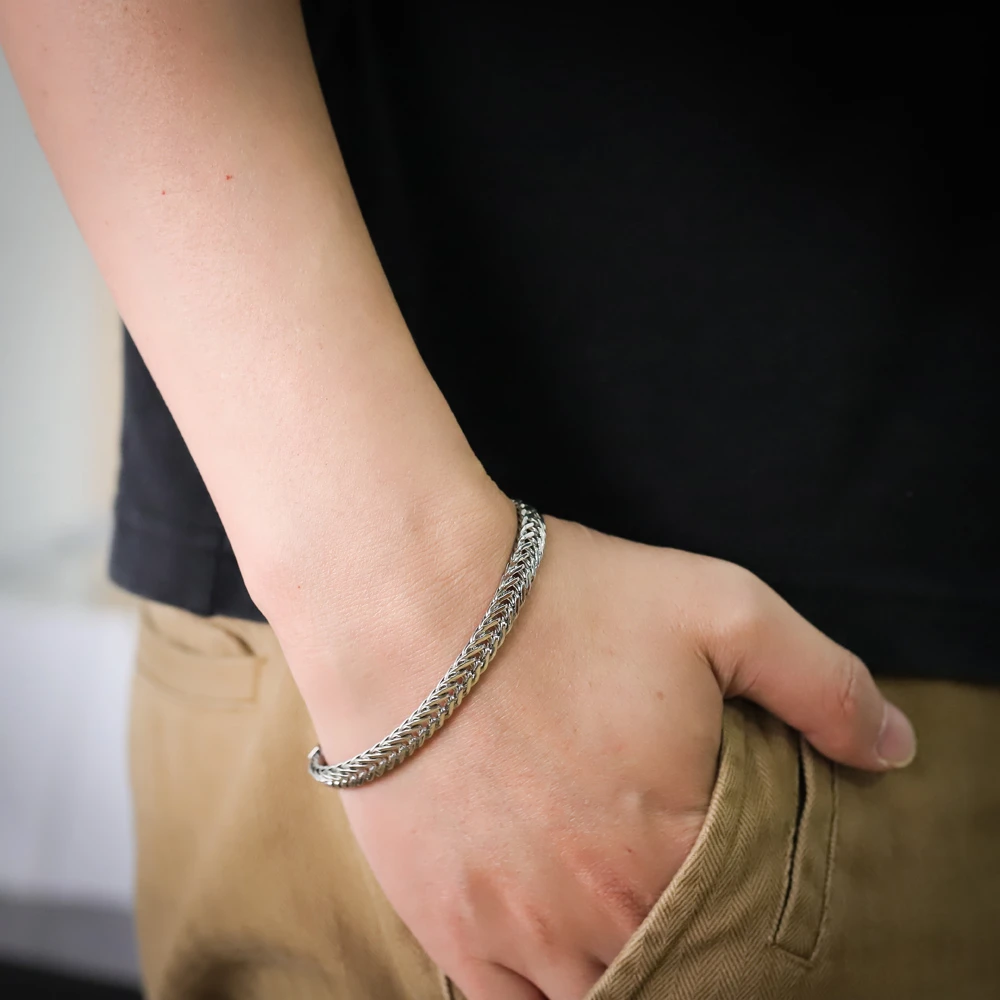 Náramek z chirurgické oceli je ideální volbou pro ty, kteří hledají decentní, ale výrazný doplněk. Skvěle se hodí k formálnímu oblečení i k ležérnímu outfitu. Díky použité chirurgické oceli je náramek odolný proti poškrábání, neoxiduje a je vhodný i pro osoby s citlivou pokožkou. Tento náramek je skvělou volbou pokud hledáte tip na dárek – stylový, praktický a s dlouhou životností.