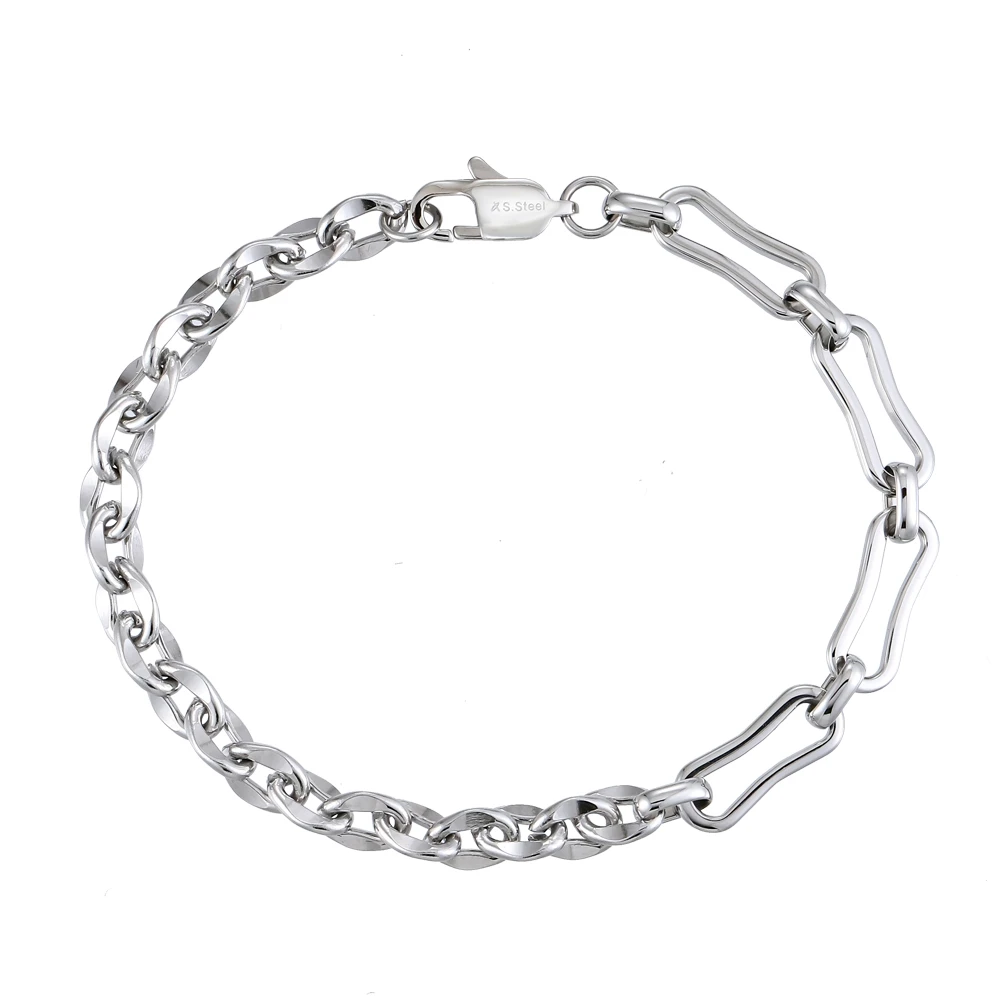 Dámský náramek na ruku vyrobený z chirurgické oceli. Povrch náramku je leštěný. Větší očka jsou široká 6mm. oválná očka jsou široká 5mm. Náramek je dlouhý 19cm.