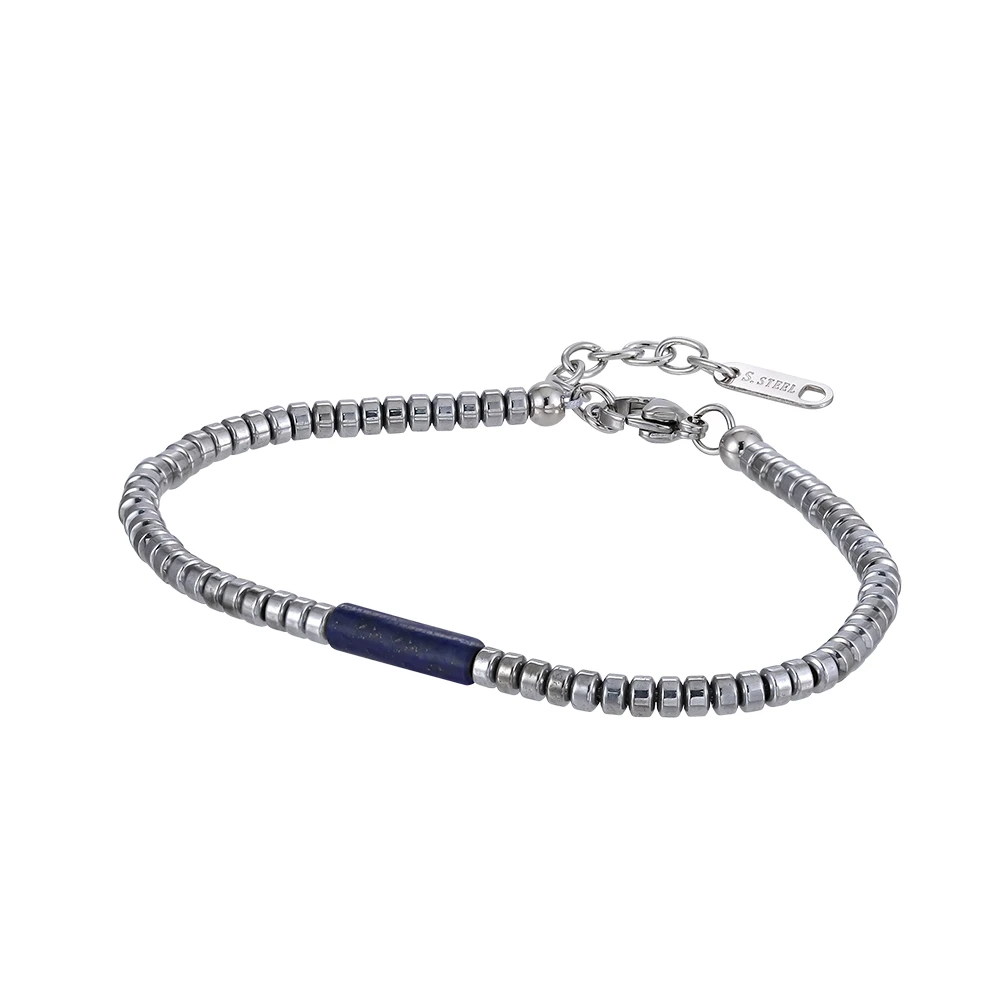 Náramek z chirurgické oceli hematitu s lapis lazuli MBSS179