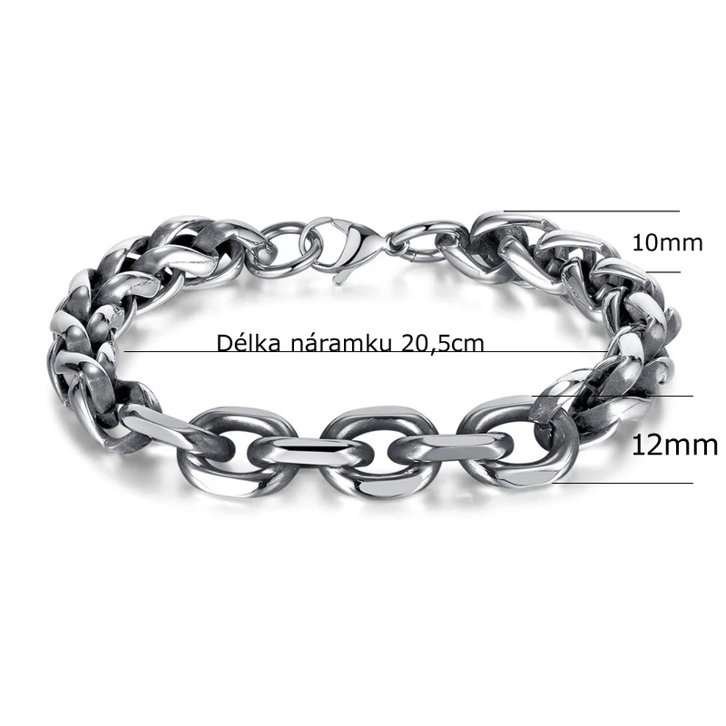 Ocelový náramek na ruku. Náramek má leštěný povrch. Délka náramku 20,5cm.