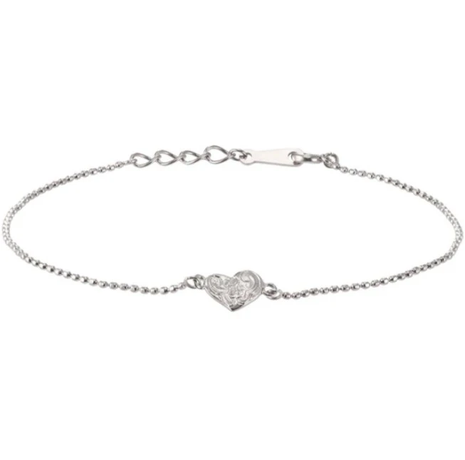 Jemný dámský náramek z chirurgické oceli se srdíčkem. Srdíčko je z jedné strany leštěné, z druhé strany má vygravírovaný vzor květů. Rozměr srdíčka 13x7mm. Řetízkové části náramku mají průměr 1,1mm. Délka náramku 20cm.