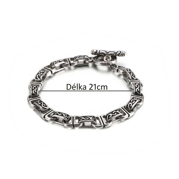 Ocelový náramek na ruku, Náramek má T zapínání. Délka náramku 20,5cm, šířka 8mm.