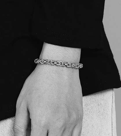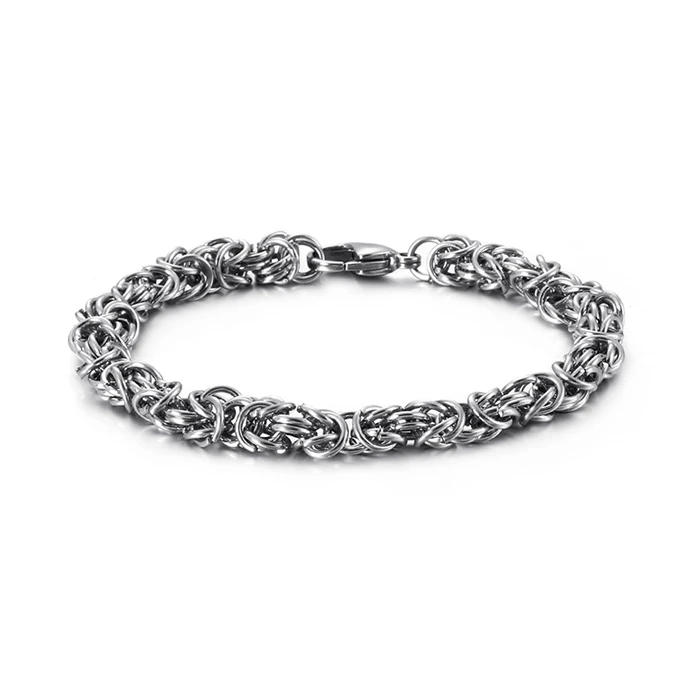 Náramek z chirurgické oceli. Ocelové náramky jsou stále velmi oblíbené šperky především pro jejich typické vlastnosti. Náramky z chirurgické oceli neoxidují, nemění barvu jsou odolné proti poškození a především nevyvolávají alergické reakce. Tento krásný ocelový náramek v královské vazbě Vám bude dělat radost po dlouhou dobu.