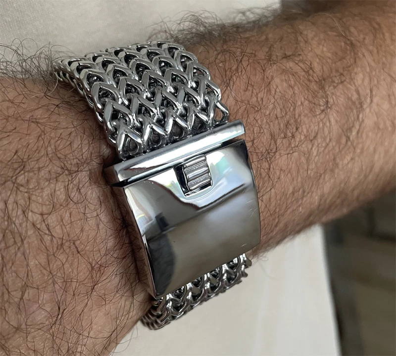 Ocelový náramek na ruku pro muže. Jako všechny šperky zhotovené z materiálu chirurgická ocel, je také tento náramek odolný proti poškození, nevyvolává magnetické reakce, neoxiduje, chirurgická ocel nemění barvu. Díky těmto vlastnostem a přijatelné ceně se ocelové šperky těší stále značně vysoké popularitě ve stále se rozšiřujících řadách spokojených uživatelů.