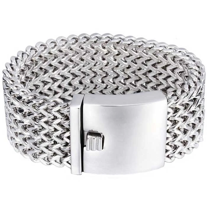 Pánský masivní náramek z chirurgické oceli. Náramek má leštěný povrch, zapínání náramku je na masivní klip. Šířka náramku 30mm.