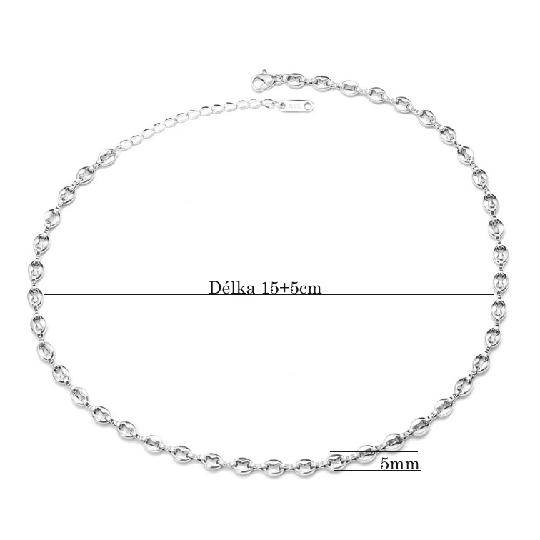 Dámský jemný náramek z chirurgické oceli. Povrch náramku je leštěný. Délku náramku lze nastavit v rozmezí 15-20cm.