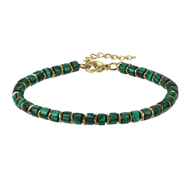 Náramek z pozlacené oceli s malachitem BSS1085