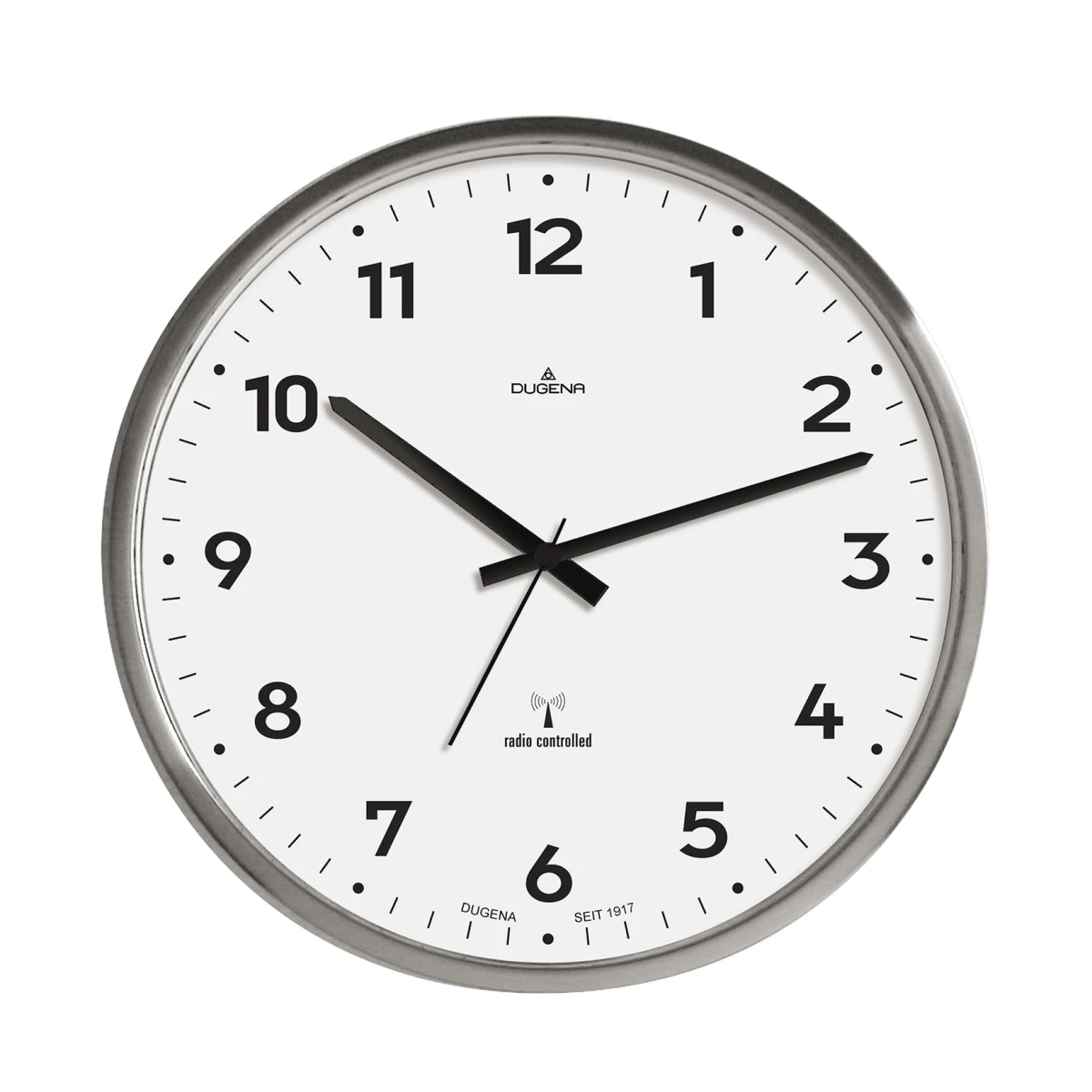 Nástěnné hodiny Dugena řízené radiovým signálem, který zajišťuje velmi přesný a zobrazení aktuálního času. Hodiny mají kovové tělo, bílý ciferník s arabským číselníkem. Průměr těchto nástěnných hodin 330mm. Hodiny jsou napájené baterií, která je součástí balení. Na všechny hodiny a hodinky Dugena je poskytována záruční doba v délce 36 měsíců.