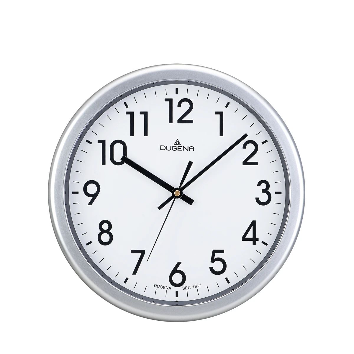 Nástěnné hodiny Dugena s bateriovým strojkem, který zajišťuje velmi přesný a tichý chod hodin. Hodiny mají plastové tělo, bílý ciferník s arabskými číslicemi. Průměr těchto nástěnných hodin 305mm. Hodiny jsou napájené baterií, která je součástí balení. Na všechny hodiny a hodinky Dugena je poskytována záruční doba v délce 36 měsíců.