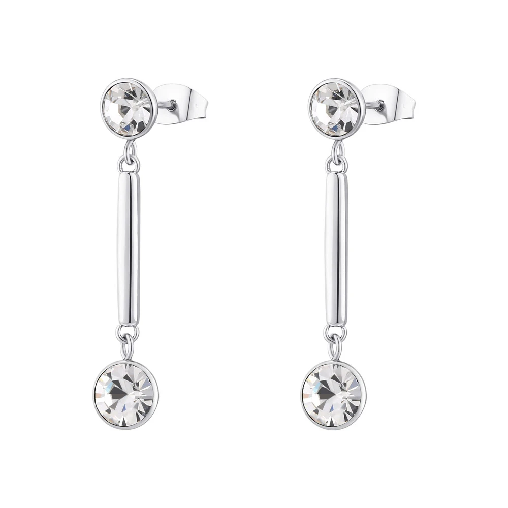 Visací náušnice řady Affinity z chirurgické oceli 316l s leštěným povrchem zdobené krystaly Swarovski. Náušnicové zapínání je na puzetky. Elegantní perlové náušnice dlouhé 35mm.