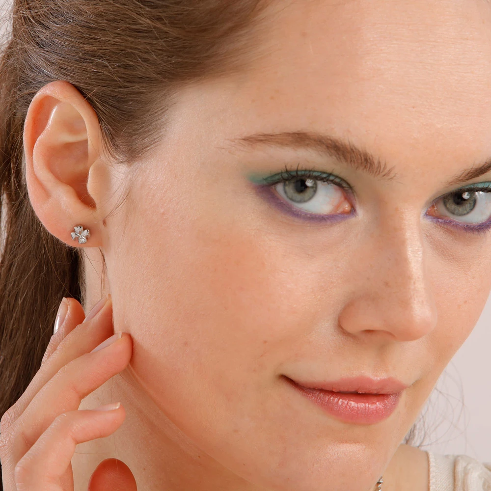 Náušnice pecky ve tvaru čtyřlístků z chirurgické oceli 316L. Povrch náušnic je upravený technologií PVD. Pecky zdobí zářivé krystaly. Velikost náušnic 6,3 mm. Náušnicové zapínání je na puzetky.