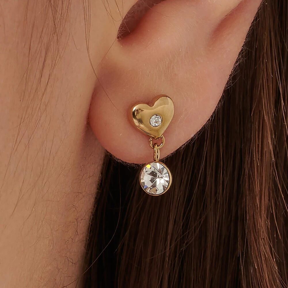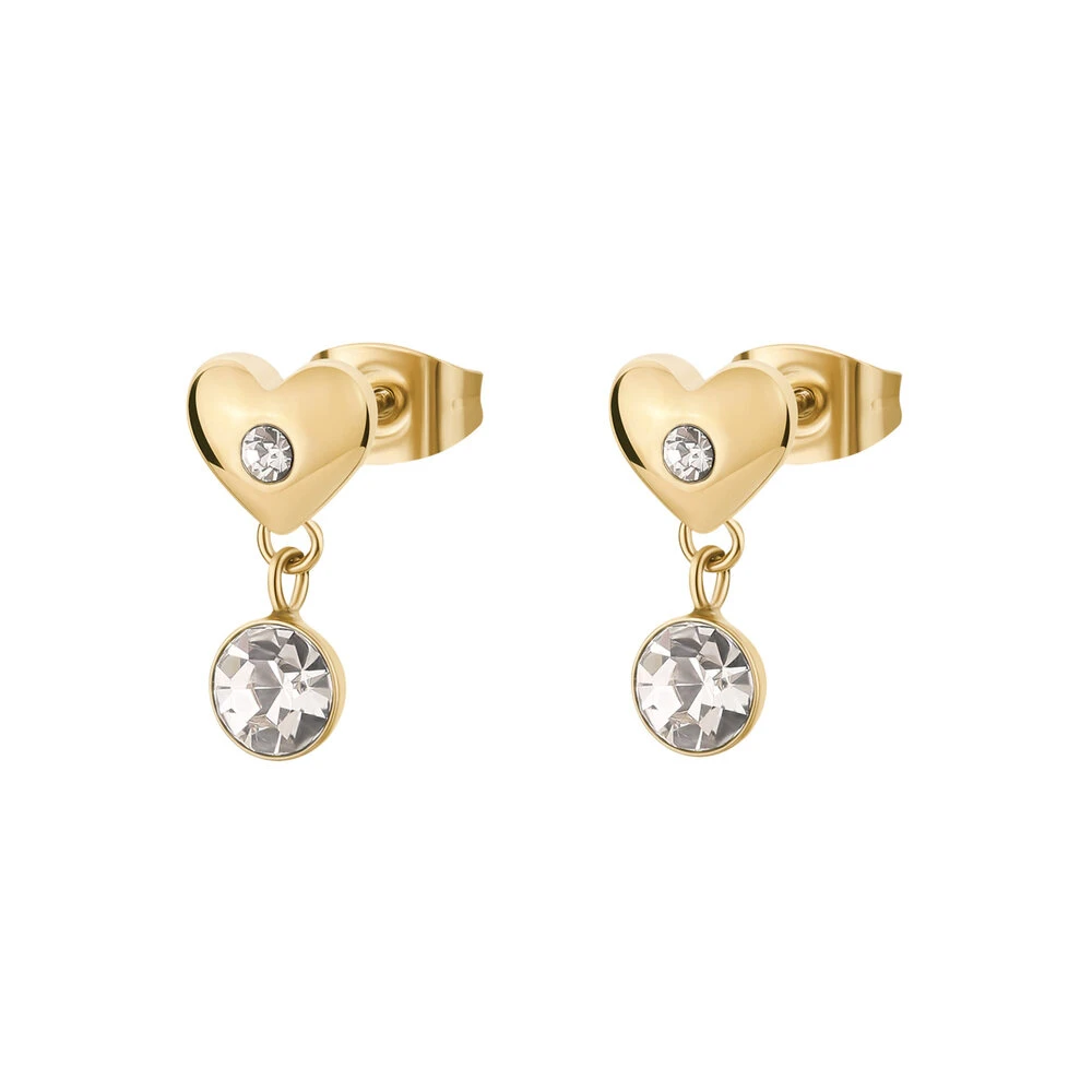 Náušnice z kolekce Brosway Chakra ve tvaru srdce s bílými zirkony jsou vyrobené z chirurgické oceli 316L a pozlacené technologií PVD. Šperky vyrobené z chirurgické oceli jsou odolné proti poškrábání, nemění barvu, neoxidují, nevyvolávají alergické reakce ani nereagují na pot a prach. Náušnice mají zapínání na puzetu a jejich rozměr je 17 mm.