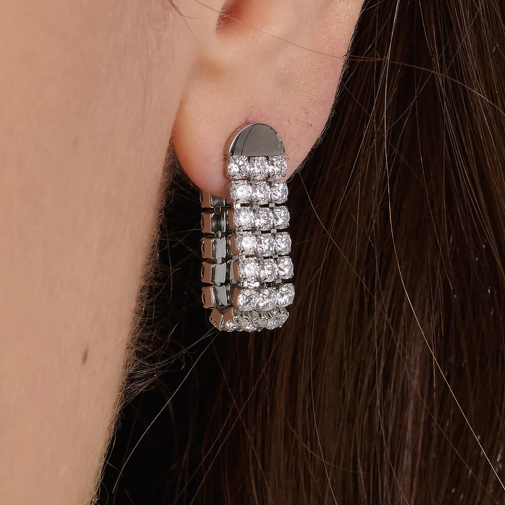Náušnice z kolekce Brosway Desideri poseté bílými krystaly jsou vyrobené z chirurgické oceli 316L. Šperky vyrobené z chirurgické oceli jsou odolné proti poškrábání, nemění barvu, neoxidují, nevyvolávají alergické reakce ani nereagují na pot a prach. Náušnice mají zapínání na puzetu a jejich rozměr je 22 mm.