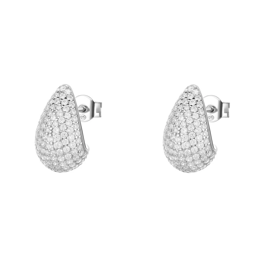 Náušnice vyrobené ze stříbra 925/1000. Náušnice jsou osazené prvotřídními zirkony. Povrch stříbra je porhodiovaný. Nanesené rhodium zamezuje přirozené oxidaci stříbra, potlačuje alergické reakce a zajišťuje tak náušnicím dlouhodobí bezchybný vzhled a jejich bezproblémové nošení. Náušnice jsou dlouhé 16mm. Náušnicové zapínání je na puzetky. Cena je uvedená za pár.