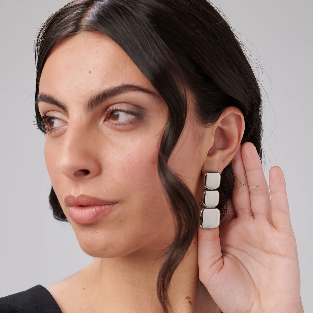 Visací náušnice vyrobené z kvalitní chirurgické oceli. Povrch náušnic je leštěný. Náušnicové zapínání je na puzetky. Dlouhé náušnice z chirurgické oceli dlouhé 48 mm.