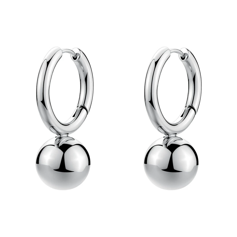 Náušnice kruhy z chirurgické oceli s kuličkou. Povrch náušnic je leštěný. Náušnicové zapínání je kloubové. Klasické kruhové náušnice o velikosti 28mm.