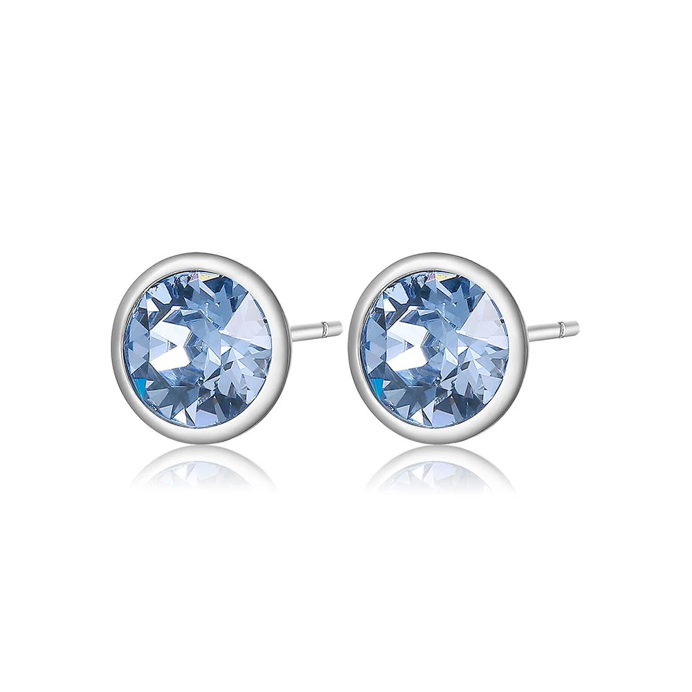 Náušnice pecky z chirurgické oceli 316L. Povrch náušnic je leštěný. Ocelové náušnice pecky osazené světle modrým krystalem. Průměr náušnic 8mm. Náušnicové zapínání je na puzetky.