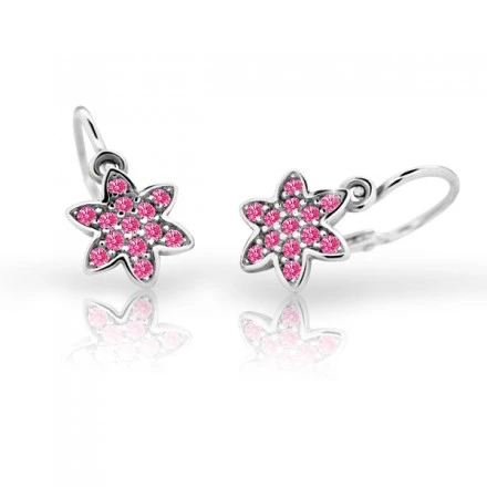 Dětské náušničky z bílého zlata ryzosti 585/000. Náušničky pro děti se zapínáním na brizuru, která zamezuje snadnému otevření zapínání a následné ztrátě náušniček. Ozdoba se zirkony má průměr 8,0mm, celková výška náušniček 15,4mm.