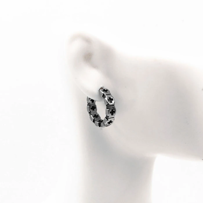 Náušnice kroužky z chirurgické oceli. Náušnice jsou ozdobené plastickým vzorem. Šířka kroužku 4,2mm, vnější průměr náušnic 17mm. Uvedená cena platí za pár náušnic.