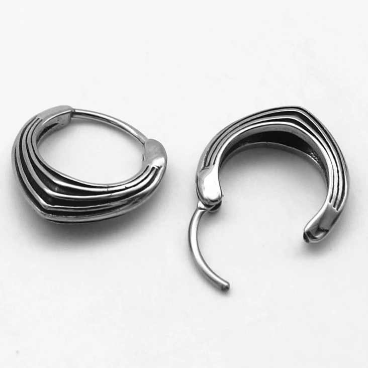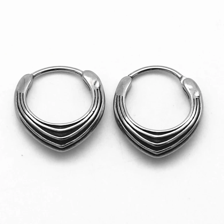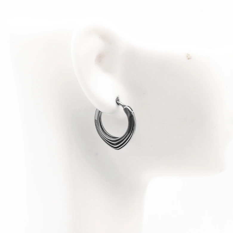 Náušnice z chirurgické oceli. Povrch náušnic je kombinace lesku s patinou. Šířka náušnic 4 mm, vnější rozměr náušnic 15x16 mm. Uvedená cena platí za pár náušnic.