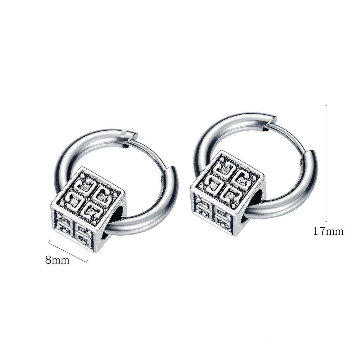 Kruhové ocelové náušnice s korálkem. Vnější průměr náušnic 17mm, šířka korálku 8mm.