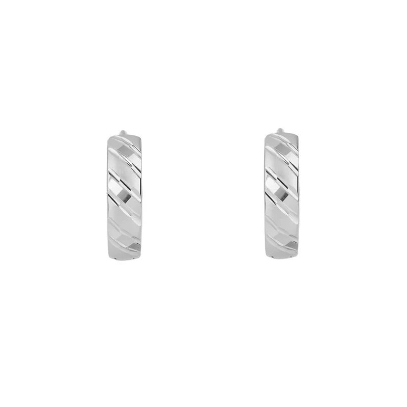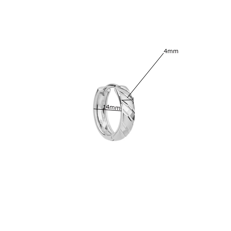 Náušnice kroužky vyrobené z kvalitního stříbra 925/1000. Povrch náušnic je kombinace mat/lesk. Náušnice jsou navíc porhodiované , což jim dodává jasnou barvu s leskem, potlačuje přirozenou oxidaci stříbra, zvyšuje odolnost povrchu proti poškrábání a zaručuje dlouhodobý bezvadný vzhled náušnic. Náušnice jsou široké 4mm, vnější průměr náušnic 14 mm. Náušnicové zapínání je kloubové.