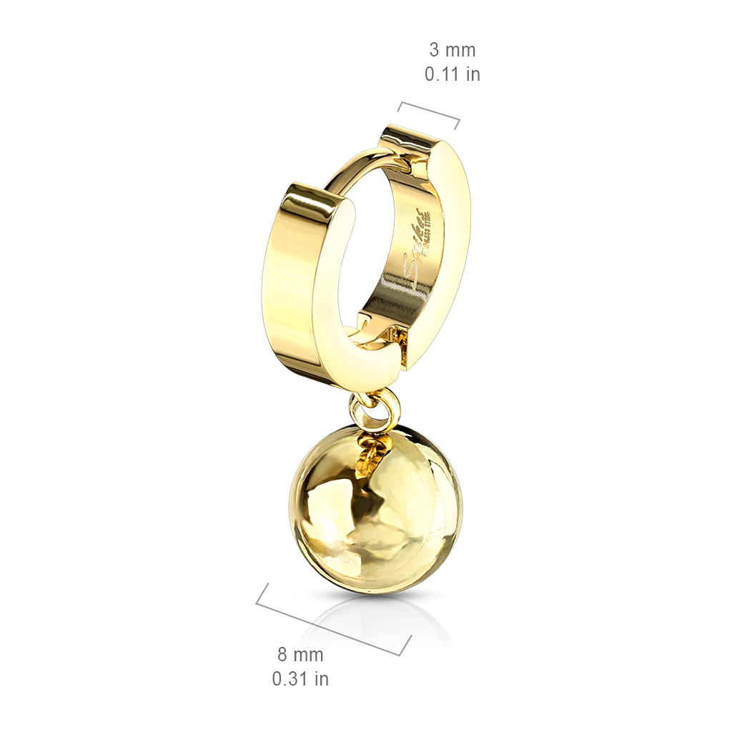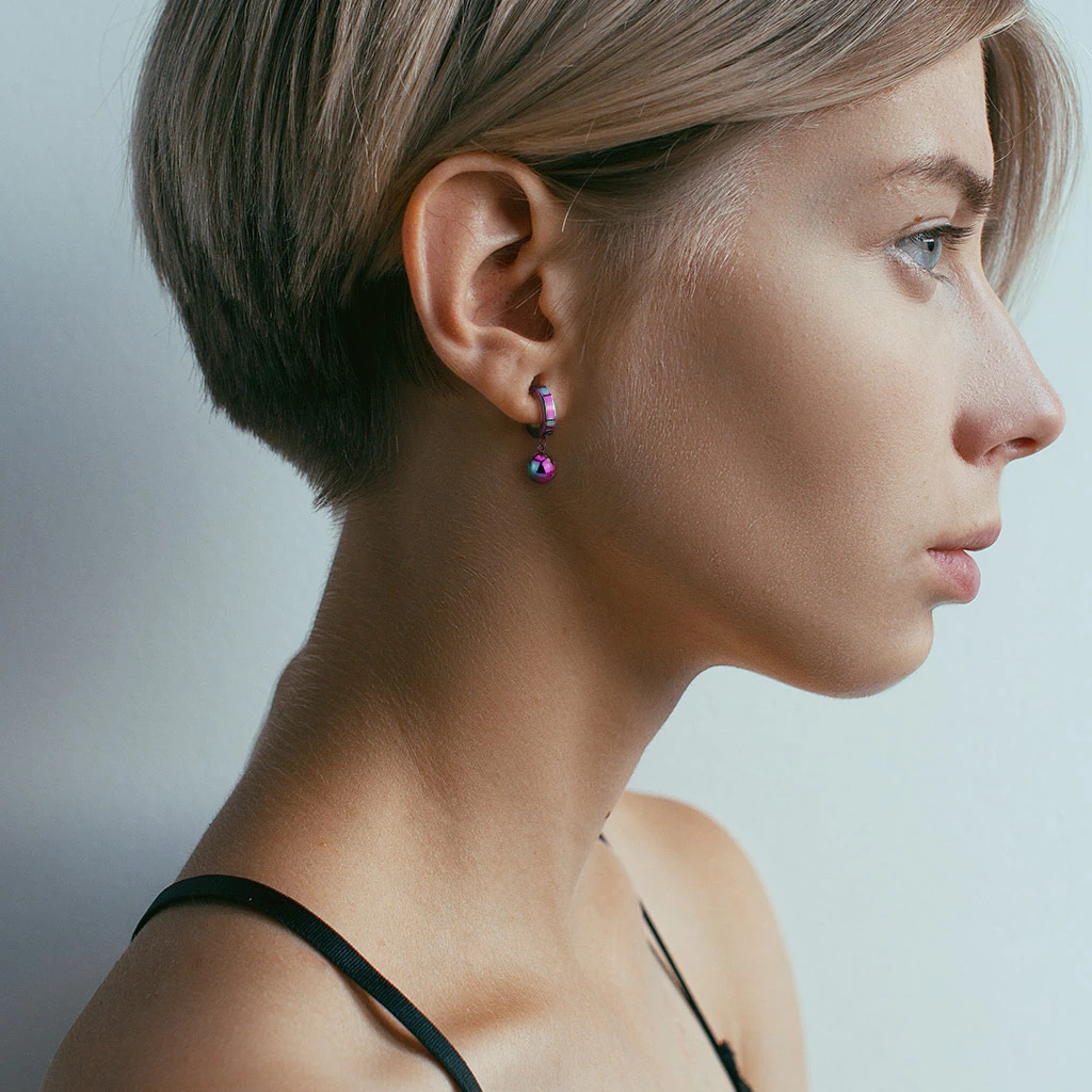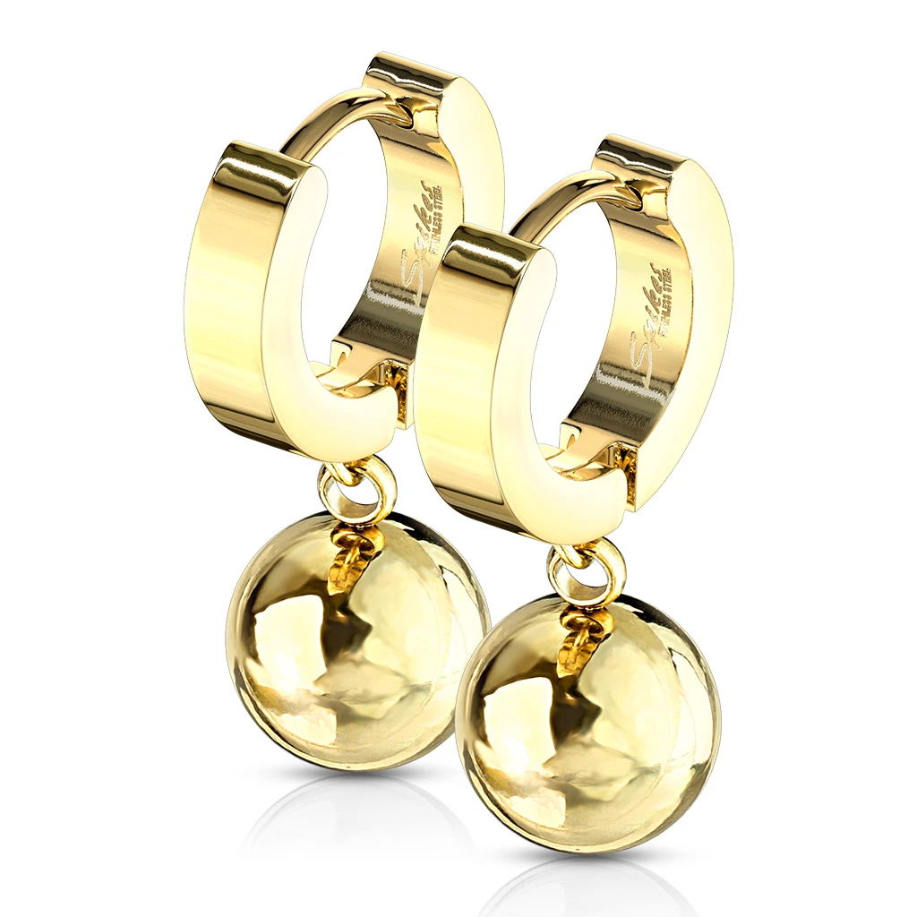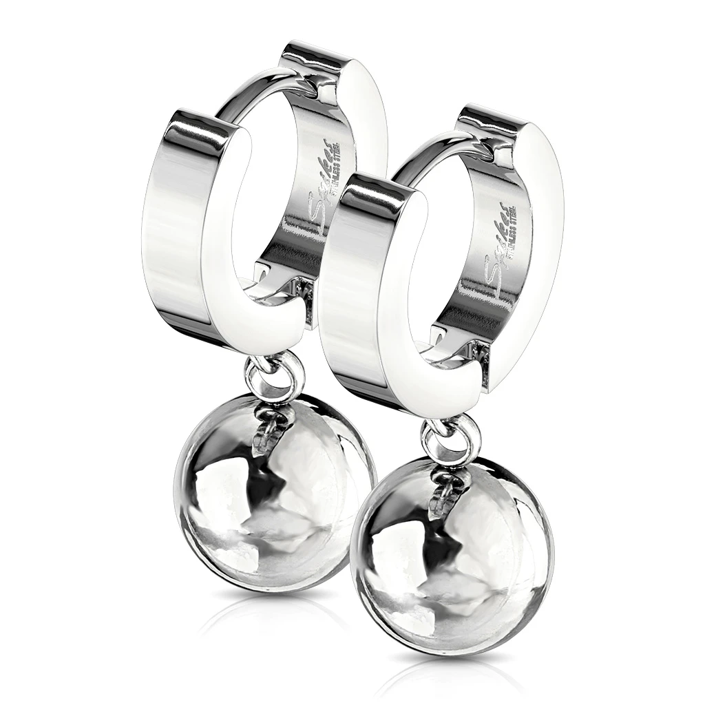 Ocelové náušnice kroužky s přívěskem. Náušnice mají vnější průměr náušnic 13 mm, šířka 3 mm. Přívěsek má průměr 8 mm. Uvedená cena platí za pár náušnic.