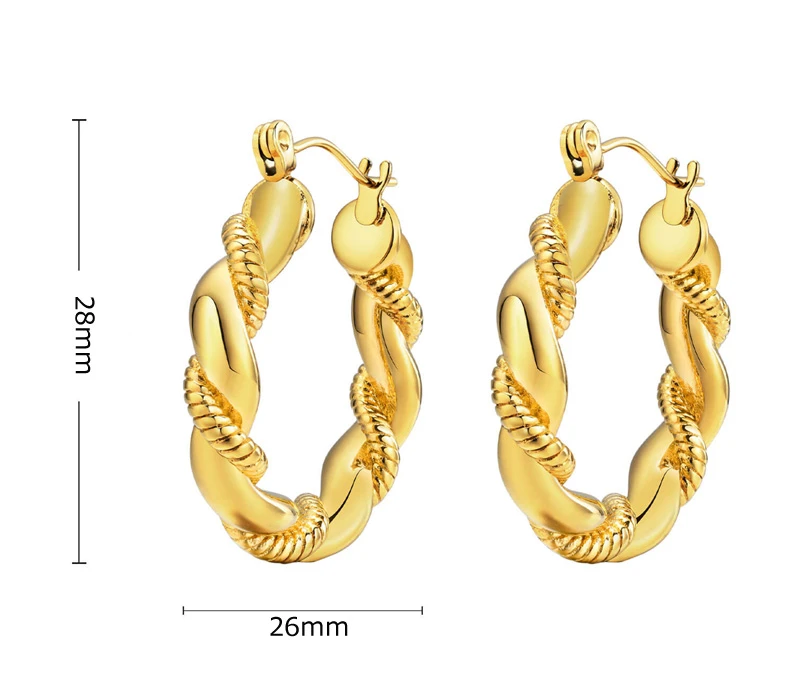 Kruhové náušnice z chirurgické oceli s povrchem pozlaceným technologií PVD. Náušnice mají rozměr 26x28mm. Šířka náušnic 4mm. Náušnicové zapínání je na francouzský zámek.