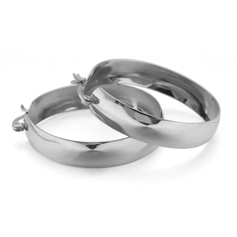 Kruhové náušnice z chirurgické oceli. Povrch náušnic je leštěný. Náušnice jsou široké 9mm. Náušnicové zapínání je na francouzký zámek. Uvedená cena platí za pár. Uvedené velikosti jsou vnější průměry náušnic.