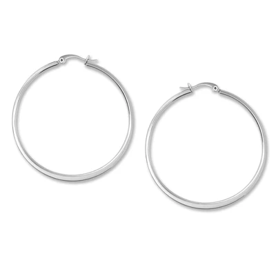 Kruhové náušnice z chirurgické oceli. Povrch náušnic je leštěný. Náušnice mají vnější průměr 45mm. Náušnicové zapínání je na francouzský zámek. Uvedená cena platí za pár.