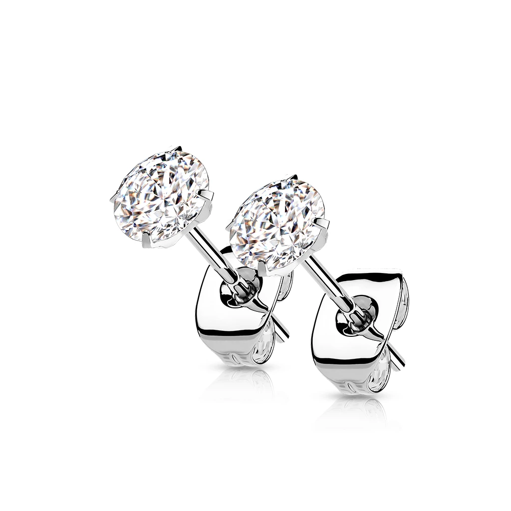 Náušnice do uší pecky se zirkony vyrobené z titanu. Zapínání náušnic je na puzetky. Dřík náušnic má průměr 0,7 mm, délka dříku 9 mm. Uvedená cena platí za pár.