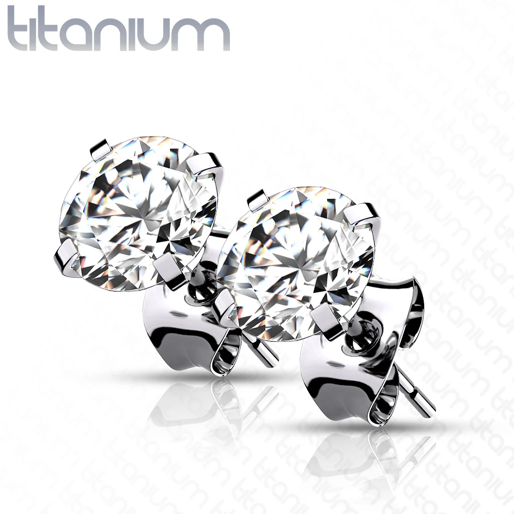 Náušnice do uší pecky se zirkony vyrobené z titanu. Zapínání náušnic je na puzetky z chirurgické oceli. Dřík náušnic má průměr 0,7 mm, délka dříku 9 mm. Uvedená cena platí za pár.