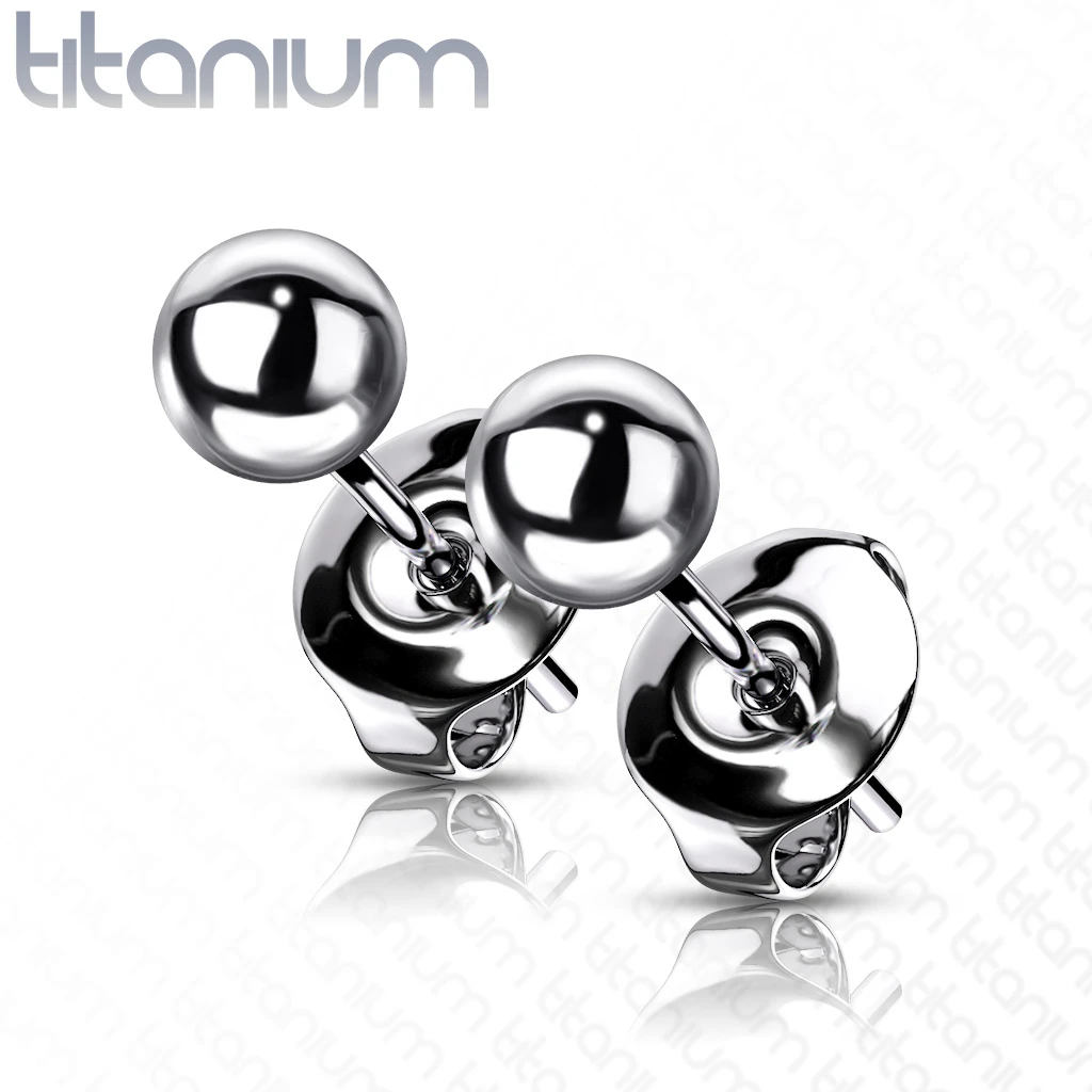 Klasické náušnice pecky vyrobené z titanu. Titanové náušnice nevyvolávají alergické reakce, neoxidují, nemění barvu a jsou "lehké jako pírko".