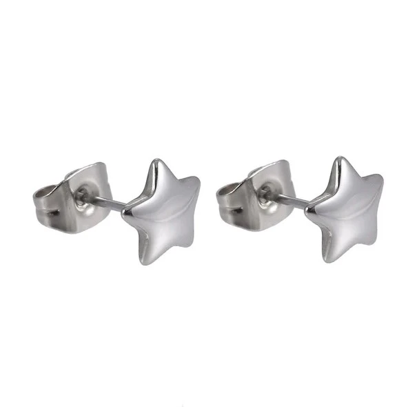 Náušnice hvězdičky z chirurgické oceli. Povrch náušnice je leštěný. Použitá chirurgická ocel garantuje dlouhodobý bezchybný vzhled náušnic. Průměr náušnic 7mm. Náušnicové zapínání je na puzetky. Uvedená cena platí za pár.
