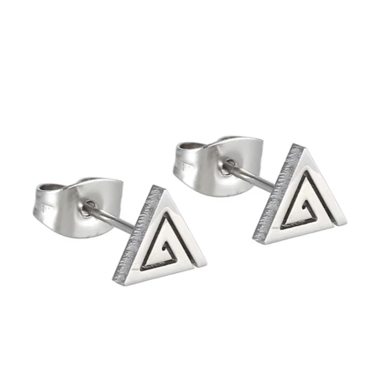Ocelové náušnice pecky ve tvaru pyramidy. Povrch náušnic je leštěný. Rozměr 6x6mm. Náušnicové zapínání je na puzetky.