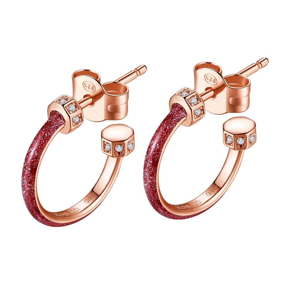 Stříbrné náušnice Rosato zdobené 32 zirkony. Povrch náušnic je pozlacený růžovým zlatem technologií IP. Náušnicové zapínání je na puzetu. Rozměr náušnic je 15 mm. Uvedená cena platí za pár.