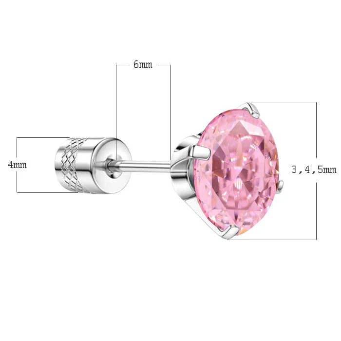 Náušnice na šroubek z chirurgické oceli. Náušnice mají na šroubku kamínek. Šroubovací část má průměr 4 mm. Kamínek je možné zvolit v průměru 3,4,5 mm. Rozměry náušnic najdete vyobrazené na podpůrné fotografii.
