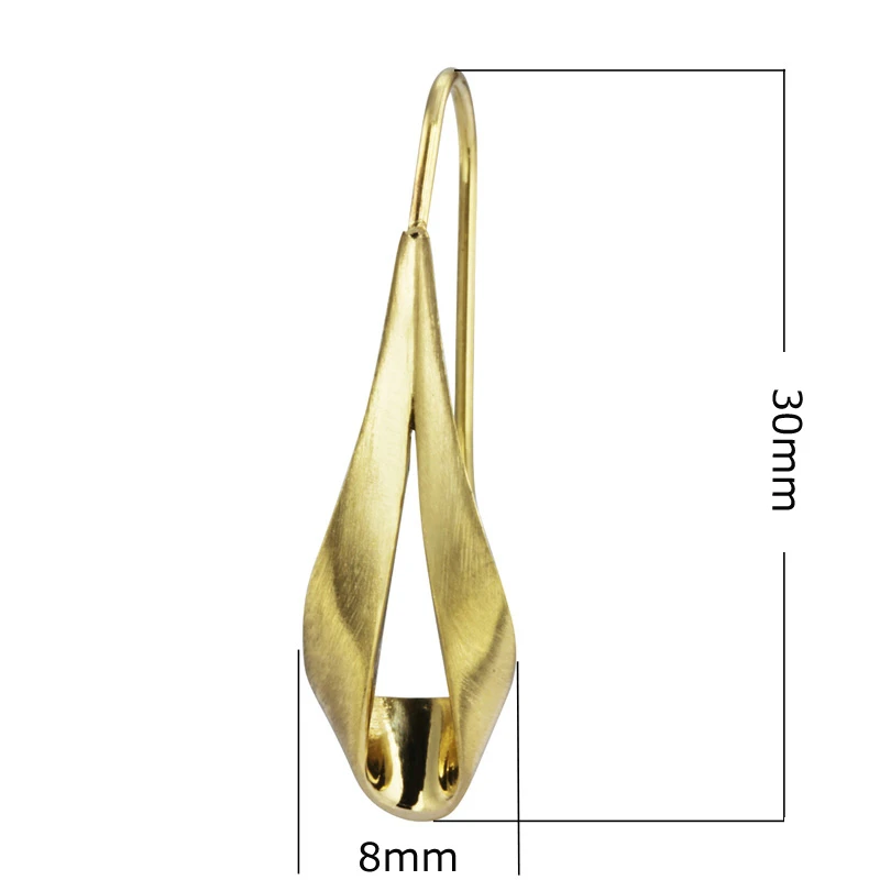 Visací náušnice z chirurgické oceli. Povrch náušnic je broušený matný pozlacený technologií PVD. Náušnice jsou dlouhé 30mm, šířka náušnic 8mm. Náušnicové zapínání je na háček.